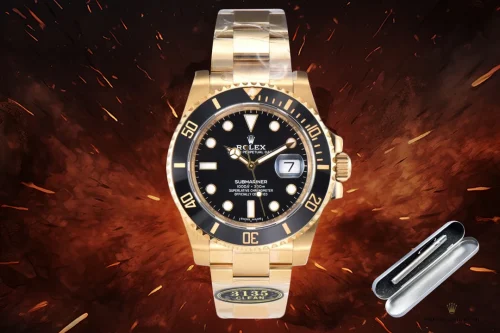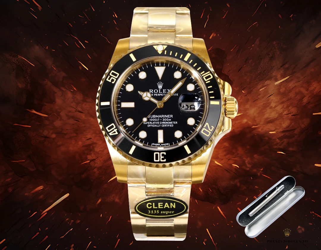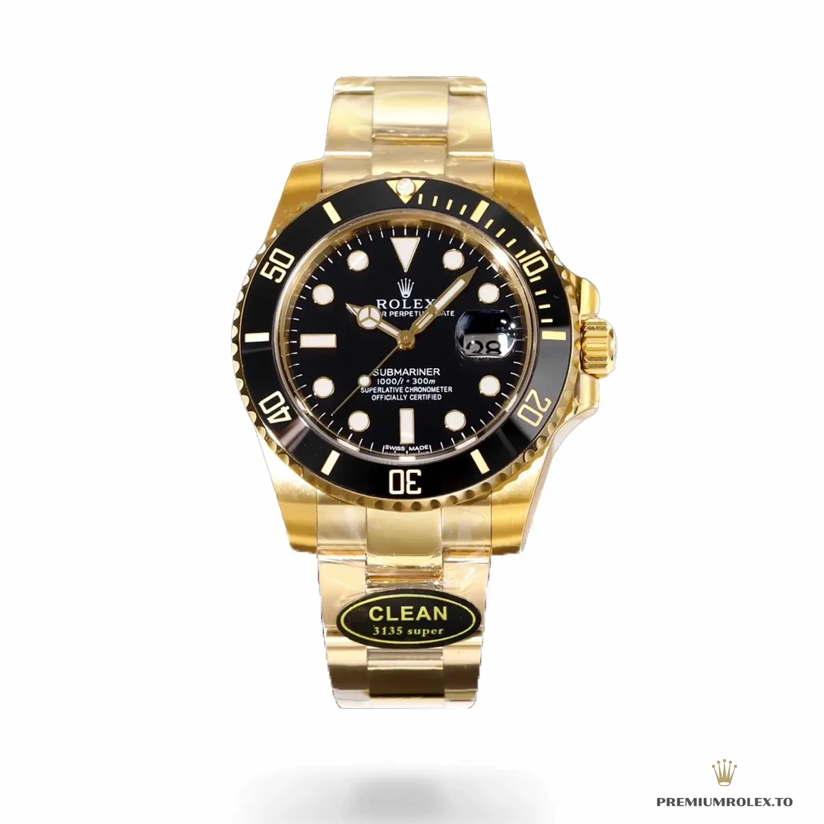 Fake Rolex Submariner 40 mm Yellow Gold 116618LN Black Dial Counterfeit