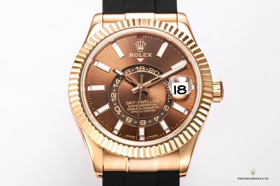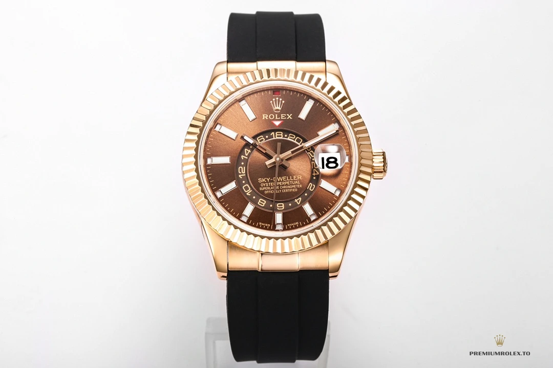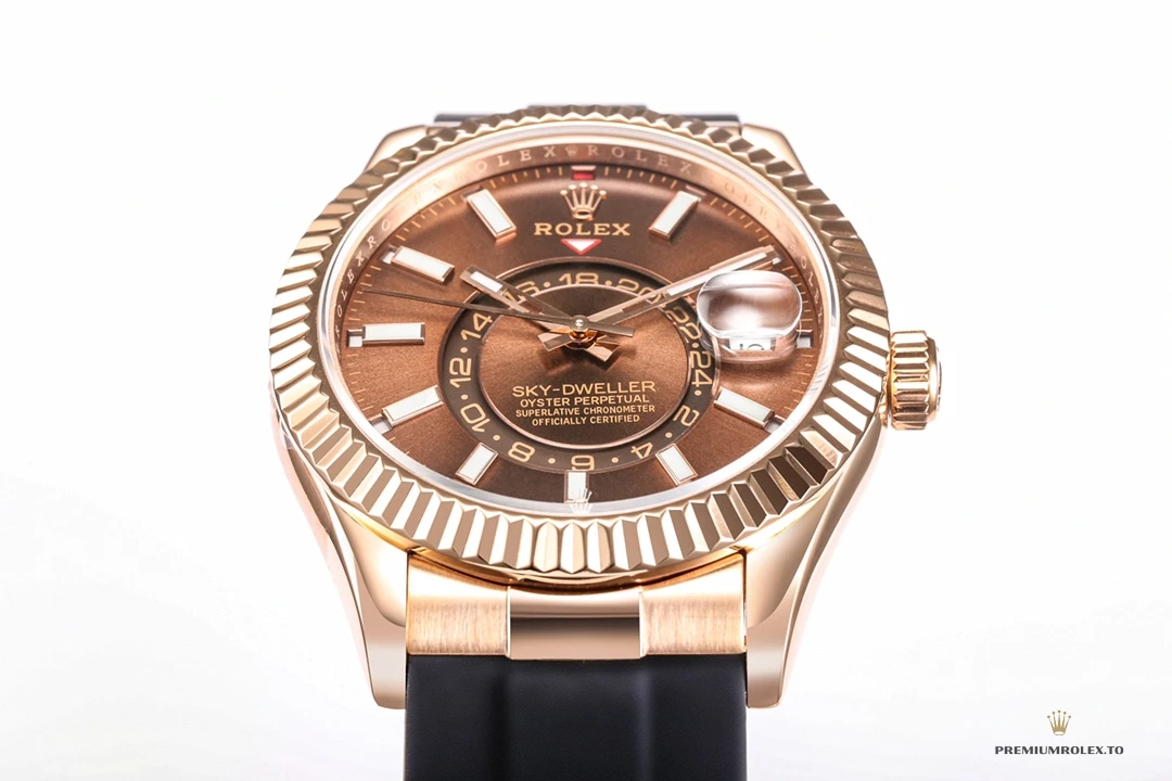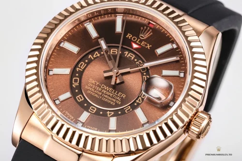 Replica Rolex Sky-Dweller Oyster 42 mm Everose gold M336235